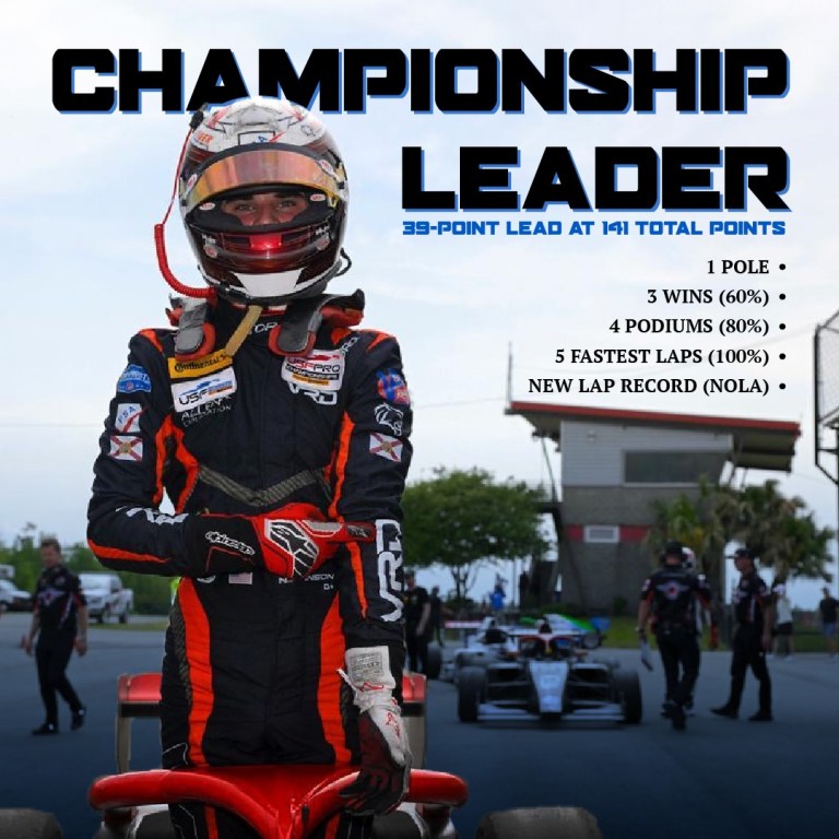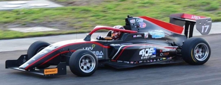 409A Direct sponsors USF Pro 2000 driver Nikita Johnson, praising his success and supporting his race journey to victory.